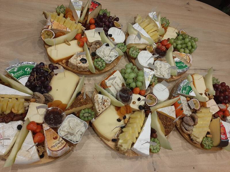 De kaasplanken zijn mooi verzorgd met een 8 tal verschillende soorten kaas aan +/- 250g pp .